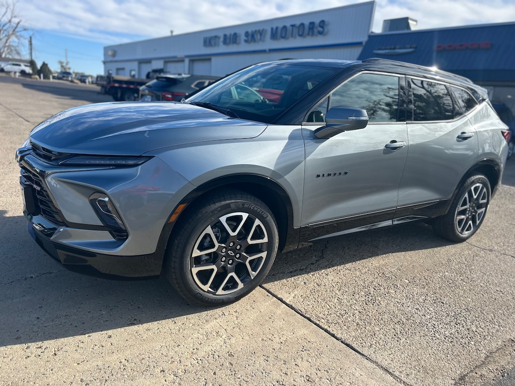 Turn heads and take control of every drive in the bold and athletic sterling gray metallic 2025 Chevrolet Blazer RS AWD, available now at HKT Big Sky Motors in Glendive, Montana. This midsize SUV combines muscular styling, advanced technology, and refined comfort—perfect for drivers across Montana and North Dakota who want performance and presence in one stunning package.